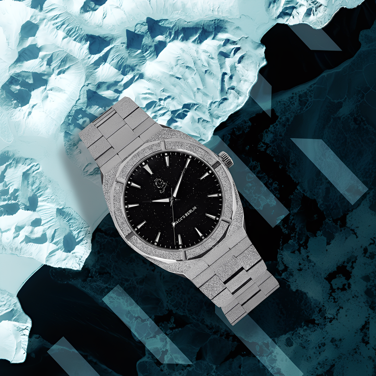With its captivating deep blue Constellation dial,The Frosted Stellarbrings the night sky to your wrist, reflecting the beauty of the cosmos. Paired with scratch-resistant sapphire-coated glass, it offers both stunning clarity and lasting durability.